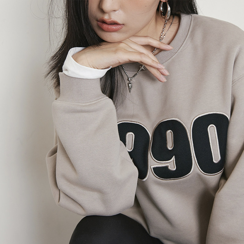 Decemarch 复古卫衣休闲宽松两色套头上衣女 1990圆领重磅美式