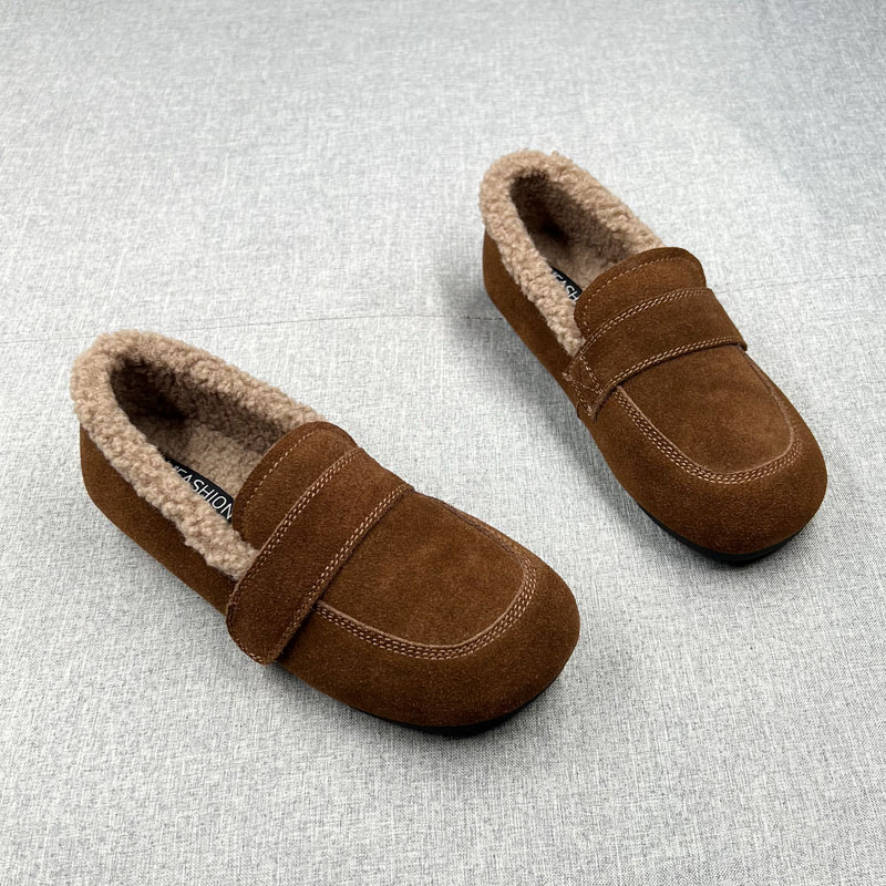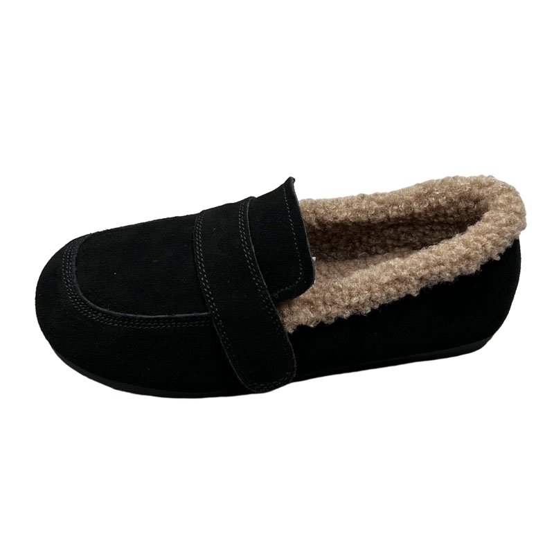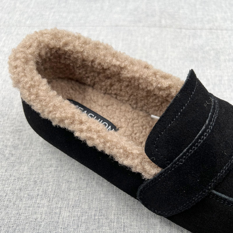 奶奶鞋 真皮一脚蹬加绒豆豆鞋 软面防滑底保暧单鞋 新款 女2025年冬季