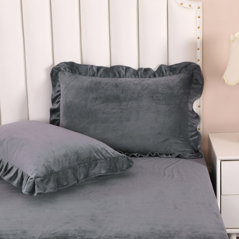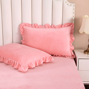 冬季 48x74cm绒面保暖加厚珊瑚绒单只枕芯套 双面牛奶绒枕套一对装
