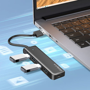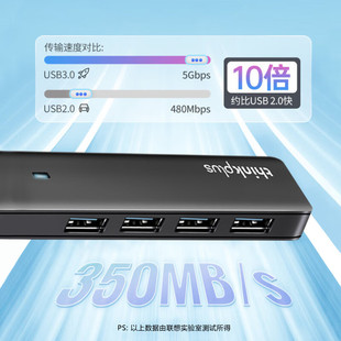 联想usb拓展坞3.0多功能扩展器分线器高速扩展坞4口HUB集线器带供电台式 LA04 笔记本电脑一拖四转换器延长线