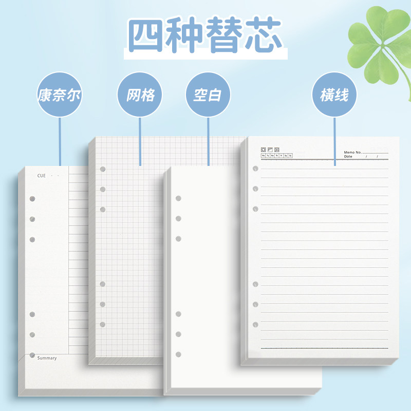 a5四叶草活页笔记本子b5可拆卸空白本考研办公大学生高颜值软皮手账本日记本可平摊定制旅行集盖章网格本批发