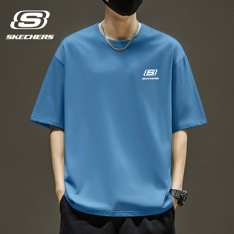 半袖 新款 圆领透气体恤青少年简约宽松运动衣 t恤男夏季 斯凯奇短袖
