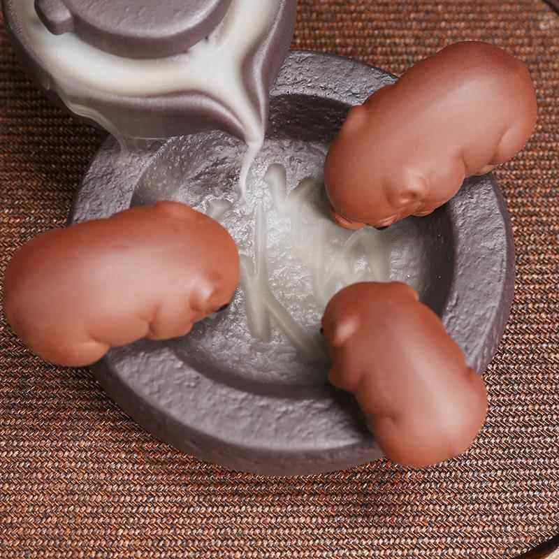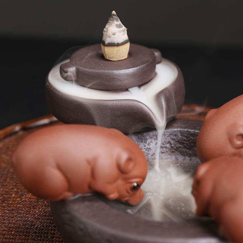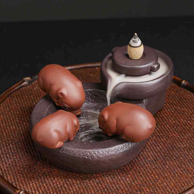 跨境紫砂倒流香薰炉 创意时来运转石墨小猪倒流檀香塔香回流香炉