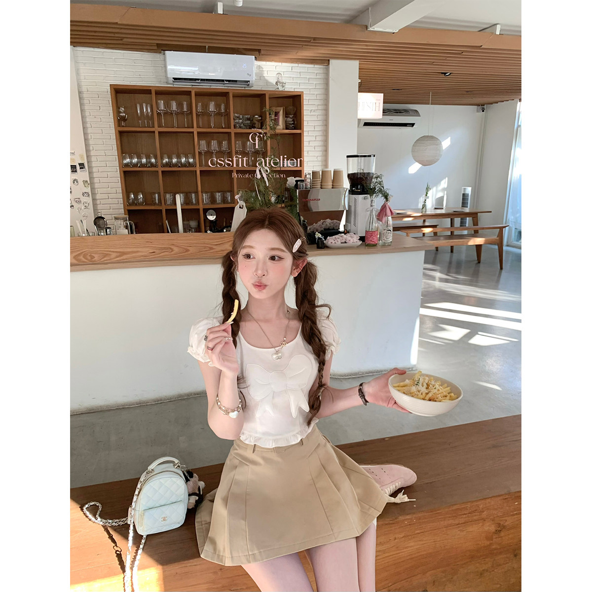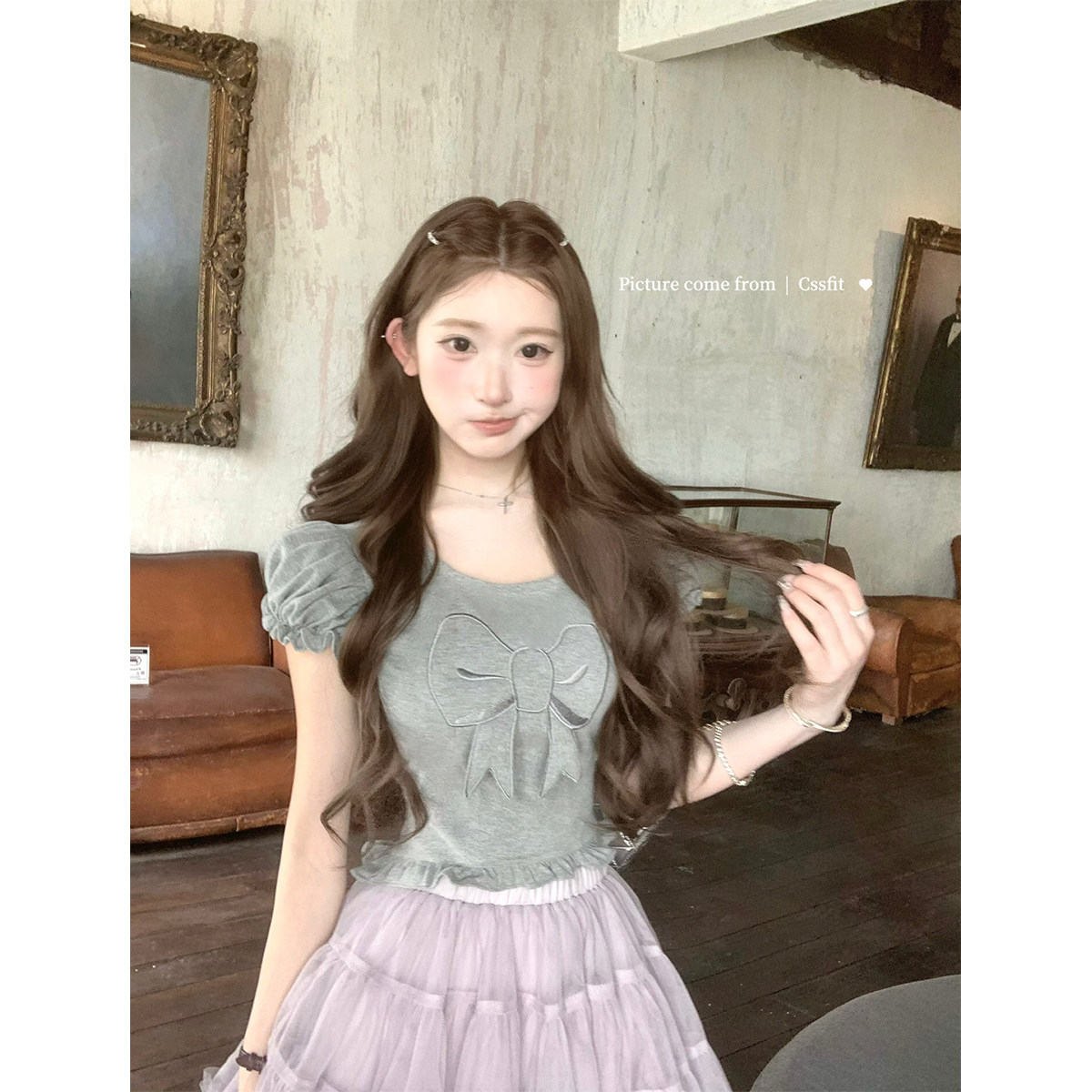 立体蝴蝶结背后小心机纯棉短袖 迟伞伞 伯爵可丽露 tee两色