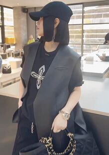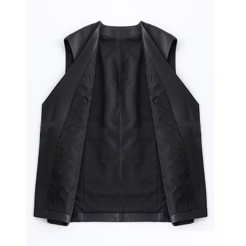 潮 马夹春秋无袖 2026春新款 欧洲站真皮绵羊皮马甲女宽松休闲中长款