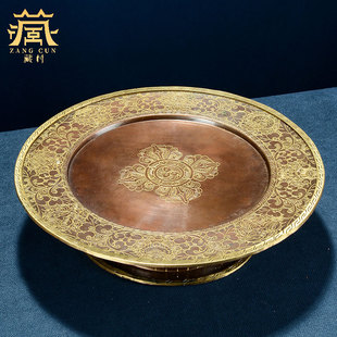 供曼扎摆件 尼泊尔手工全铜描金曼扎紫铜镀金雕花藏族曼茶罗修盘