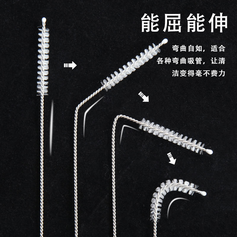 吸管刷奶瓶清洁刷细长杯盖藕片奶嘴杯刷套装 加粗加长不锈钢软毛刷