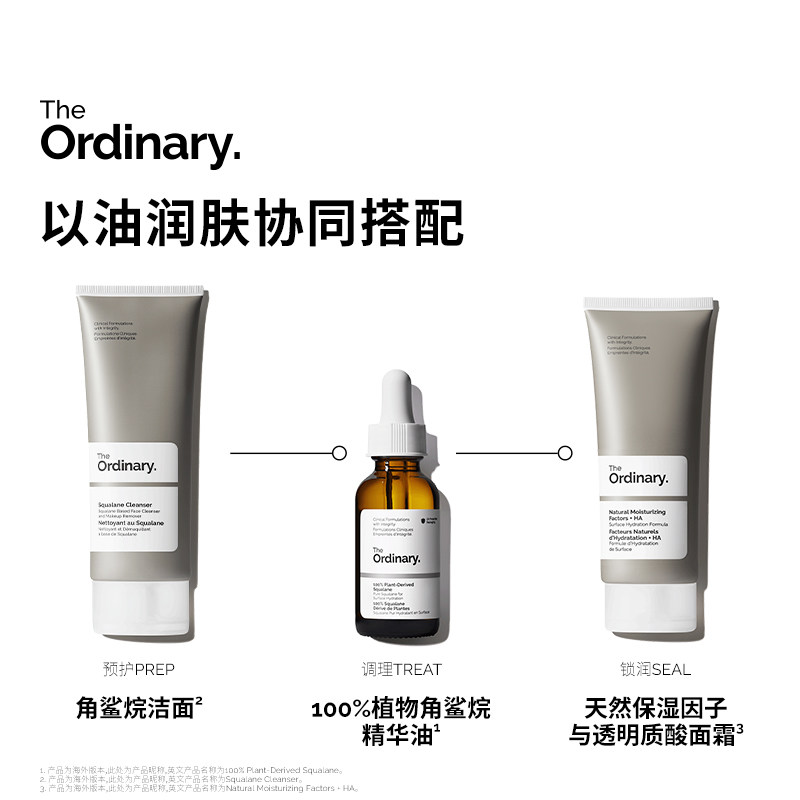 The Ordinary100%植物角鲨烷精华油角鲨烷油面部精油30ml以油养肤