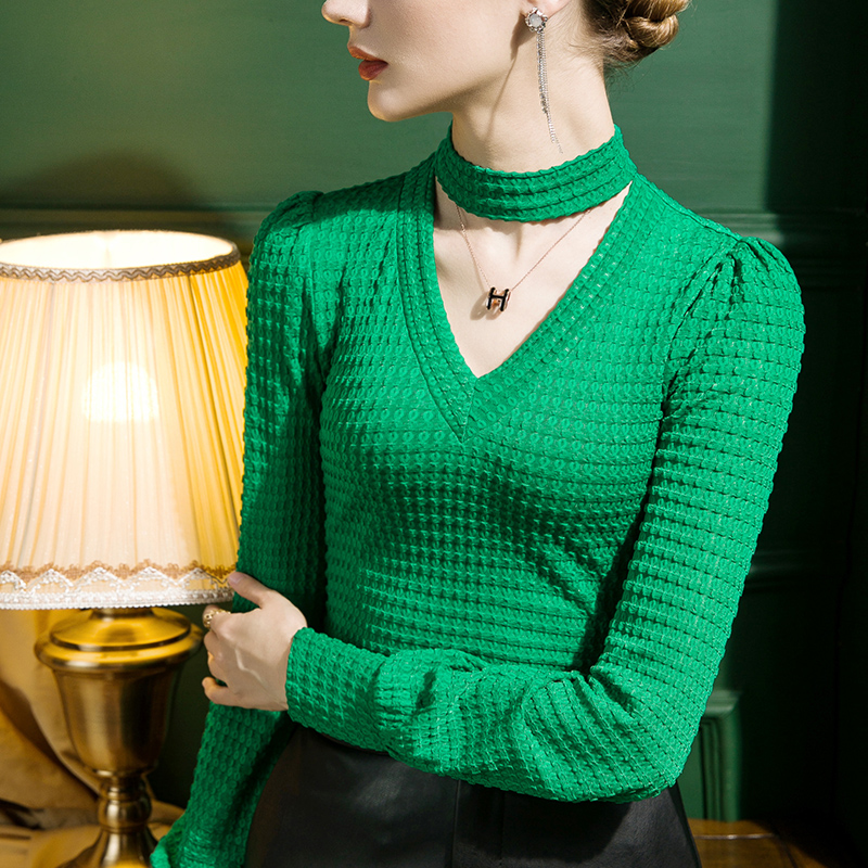 小衫 2025秋季 春秋灯笼袖 纯欲风洋气泡泡袖 立领挂脖镂空上衣女修身