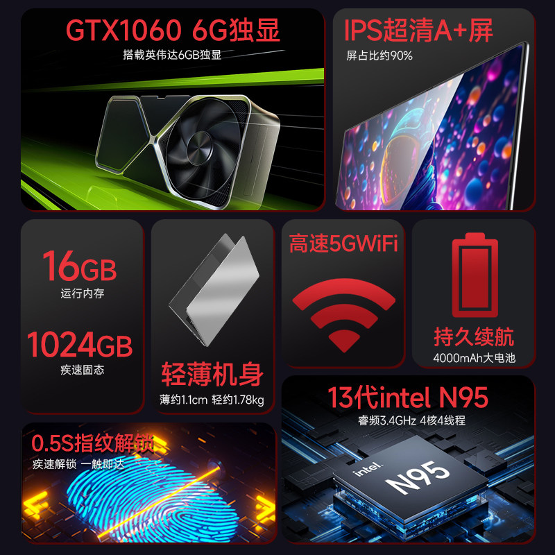 办公笔记本电脑电竞游戏本热销超薄15.6英寸商务办公轻薄本大学生高配置设计本2025新款 13代6G独显酷睿i7