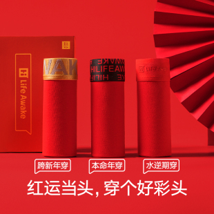 本命年红色透气10A抗菌棉氨短裤 鸿运平角内裤 衩 海澜之家男士 HLA
