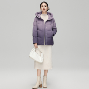 年轻 羽绒服短连帽百搭暖渐变紫时尚 雪中飞2025年货冬新款 女妈妈款
