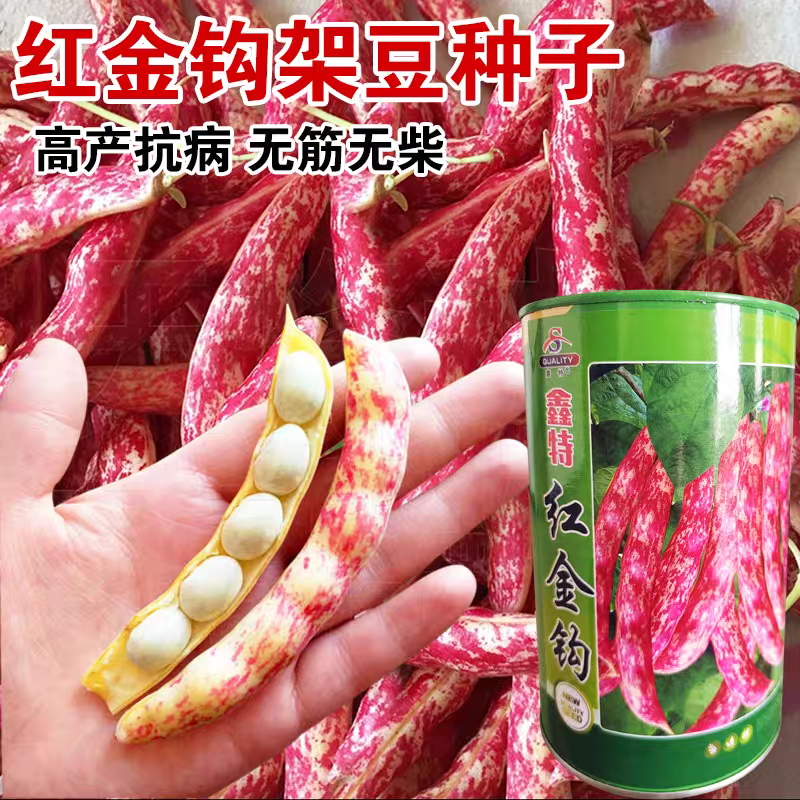 早熟红金钩种子黄金钩红皮架豆油东北无筋红皮豆角农家蔬菜种子籽