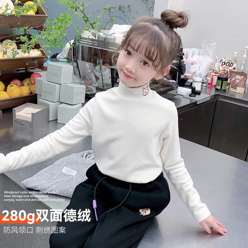 小立领基础款 T恤2025秋冬修身 上衣 女半高长袖 白色德绒内搭打底衫