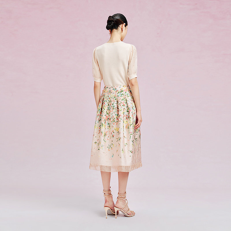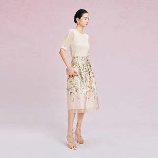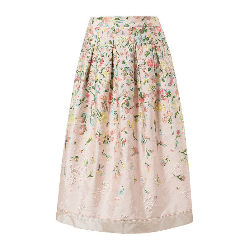 花卉艺术提花半身裙气质中长款 新款 伞裙女 Koradior拉珂蒂春季