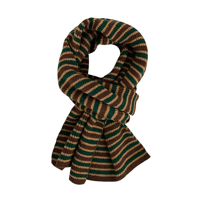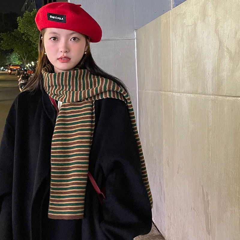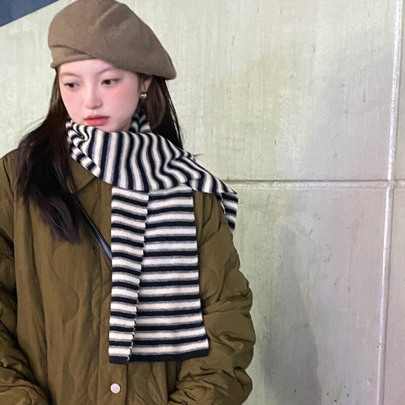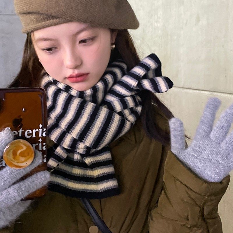 百搭针织毛线围脖 小众学院风时尚 韩系条纹保暖围巾冬季 女2025新款