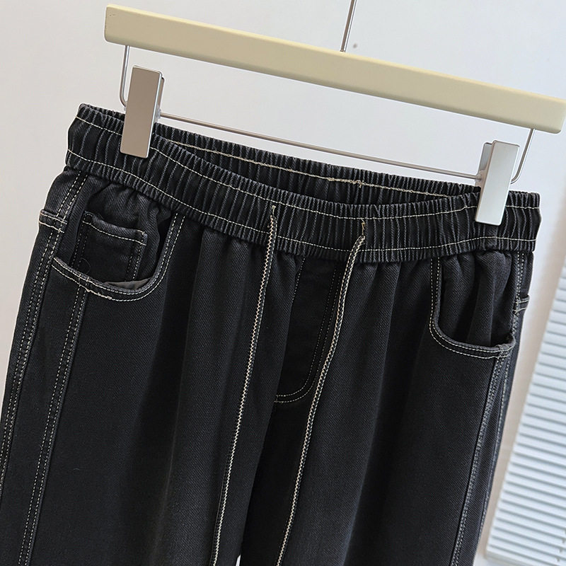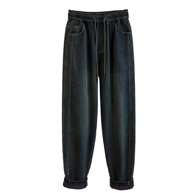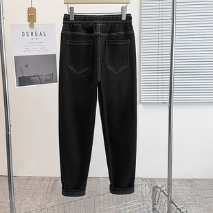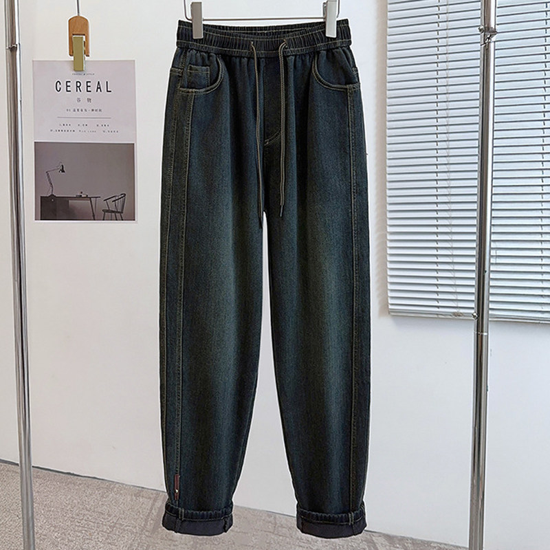女200胖mm显瘦梨形身材哈伦老爹裤 300斤特大码 加绒松紧高腰牛仔裤