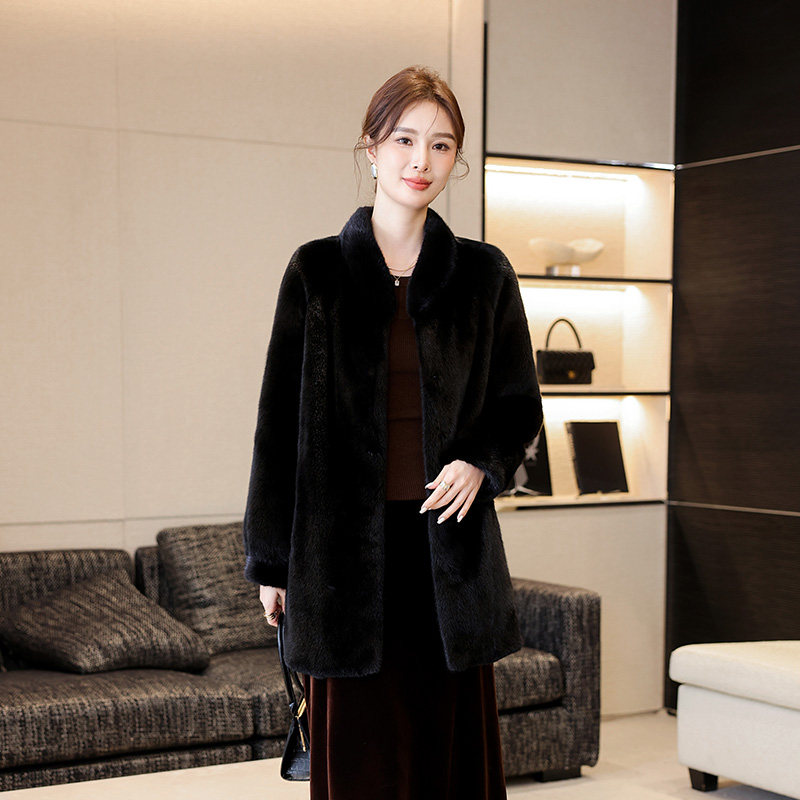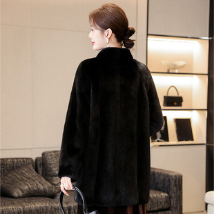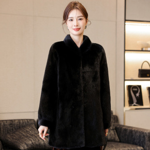 水貂皮草大衣女2025冬季 天鹅绒皮毛一体整貂裘皮外套 新立领妈妈款