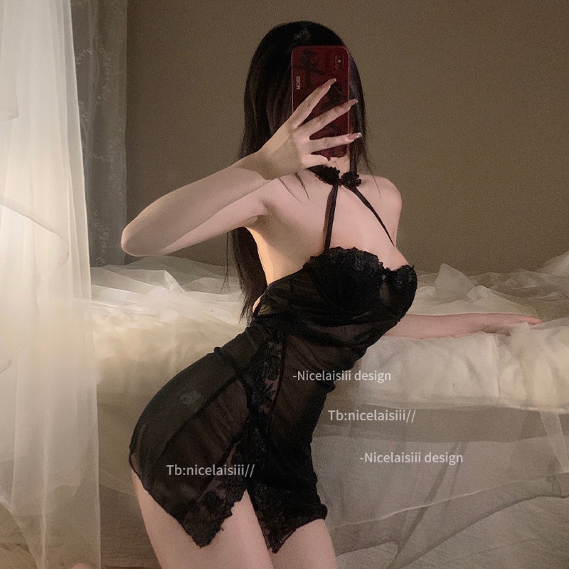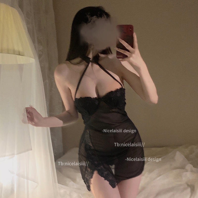 今夕何夕性感睡衣女秋冬季 蕾丝纯欲风带胸垫冰丝吊带睡裙 2025新款