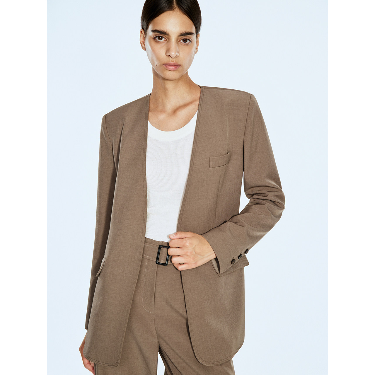 直筒长裤 COVERINS 外套女 宽肩V领系带西装 34110090 郑希怡同款