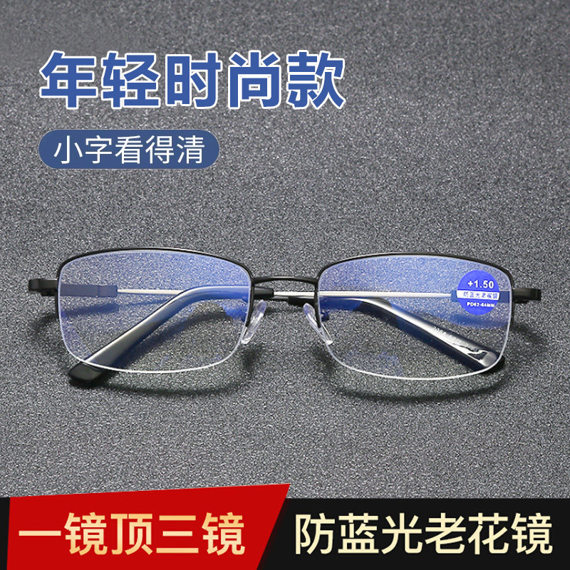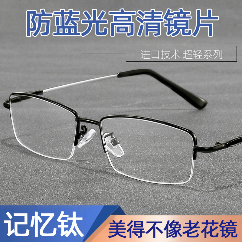 半框老光眼镜 防蓝光中老年人树脂品牌正品 老花镜男款 高清老人男式