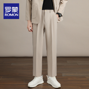 宽松直筒阔腿裤 男士 男九分休闲秋季 厚款 罗蒙西装 高级垂感小西裤 裤
