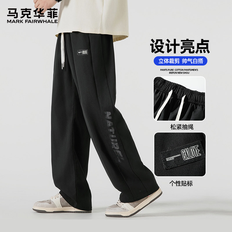 黑 深灰 美式 直筒宽松阔腿休闲长裤 男 JZD 百搭痞帅运动卫裤 浅灰