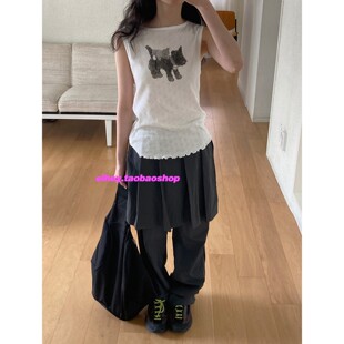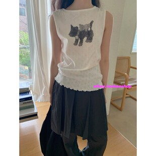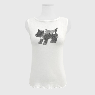 eihey诶嘿25夏棉质小狗印花背心通勤简约爱心镂空花边无袖 上衣女