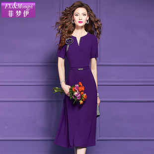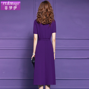 菲梦伊原创紫色钉珠连衣裙女夏装 别致独特高端优雅收腰贵夫人裙子