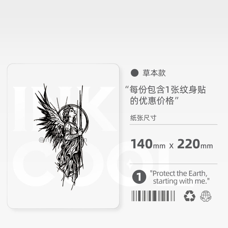 INKCOOL 持杖天使纹身贴张扬原创防水持久草本纹身贴花臂IK085