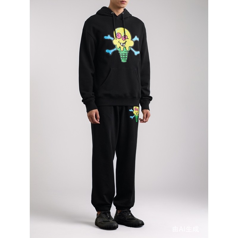 查尔斯桃心撞色格子加绒加厚开衫 外套 卫衣男手绘字母印花连帽新款