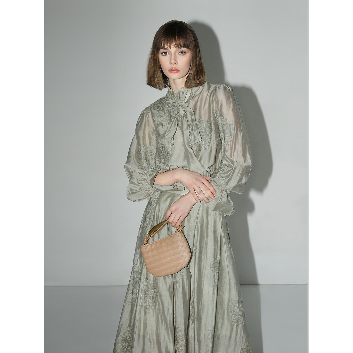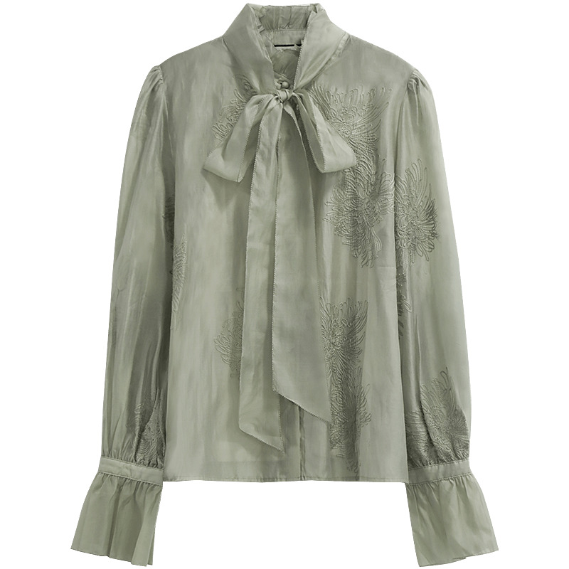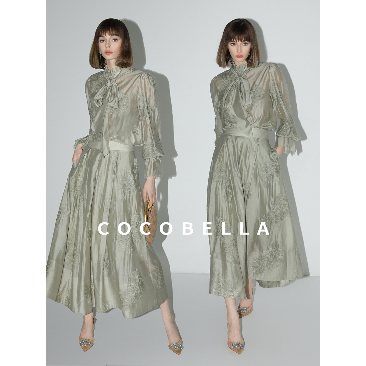 COCOBELLA重工对丝刺绣薄荷曼波莱赛尔衬衫 吊带两件套SR7015B