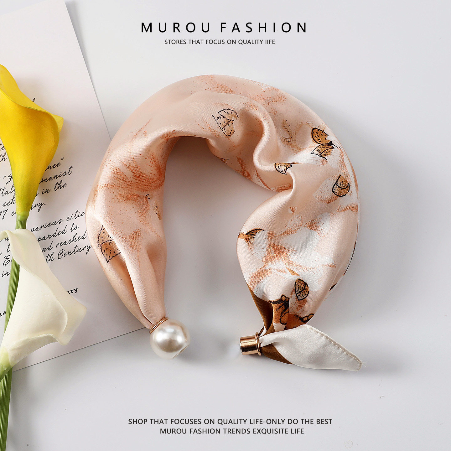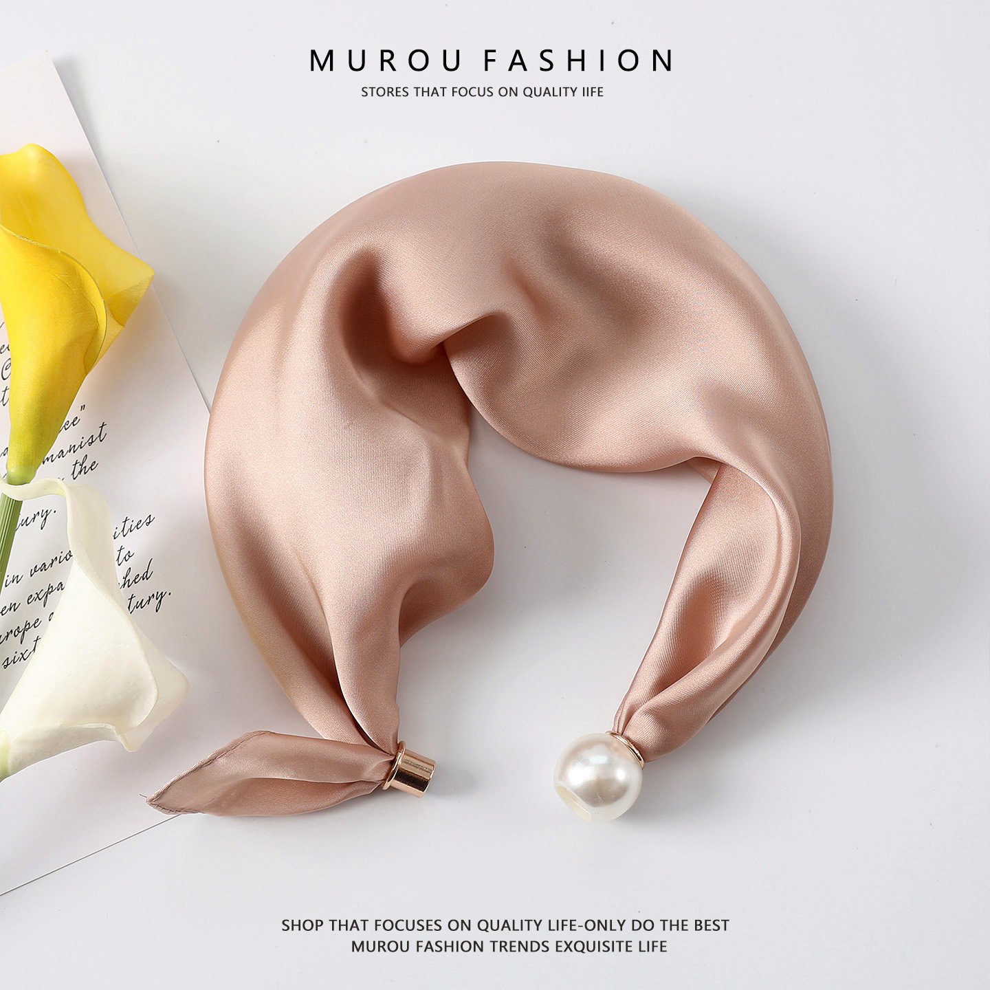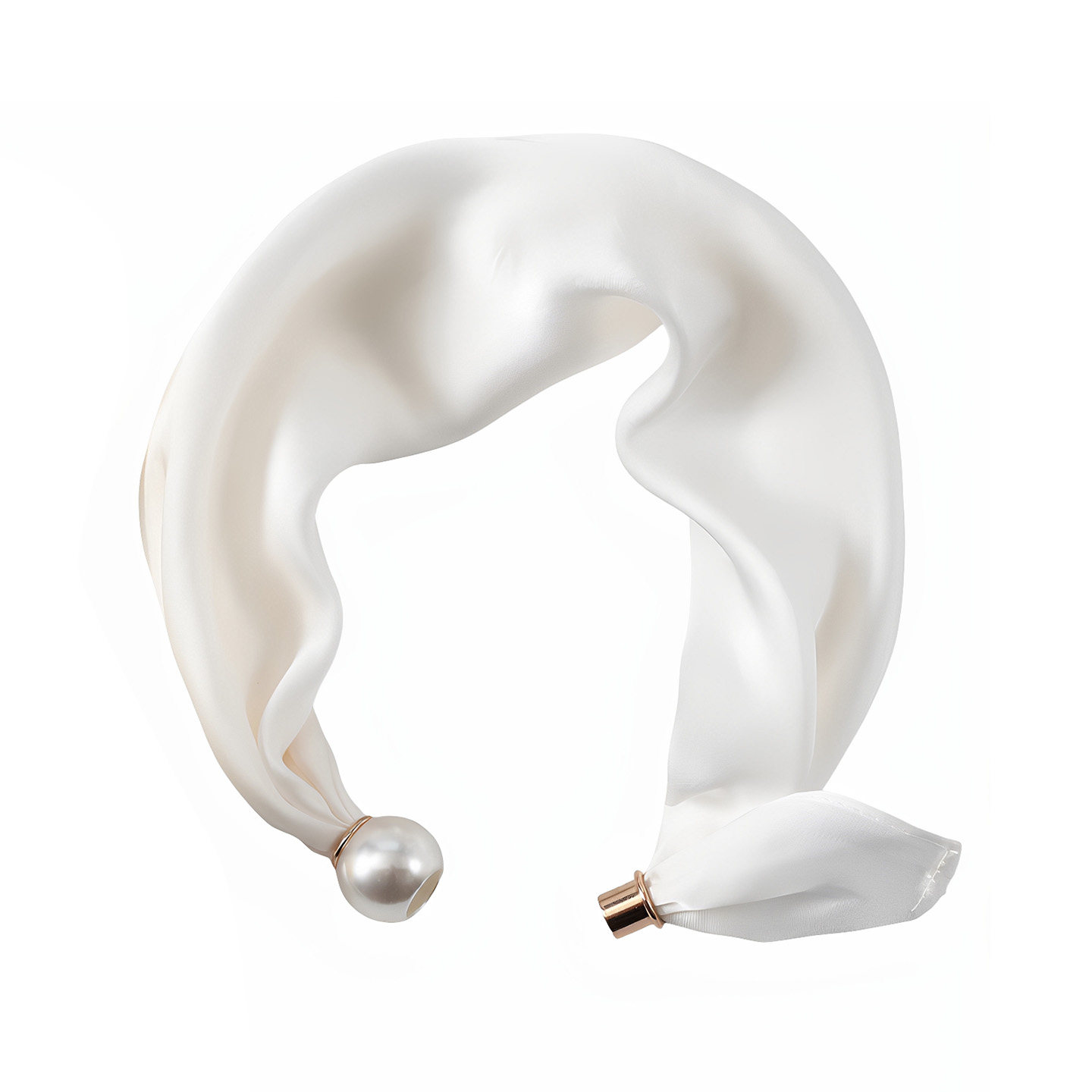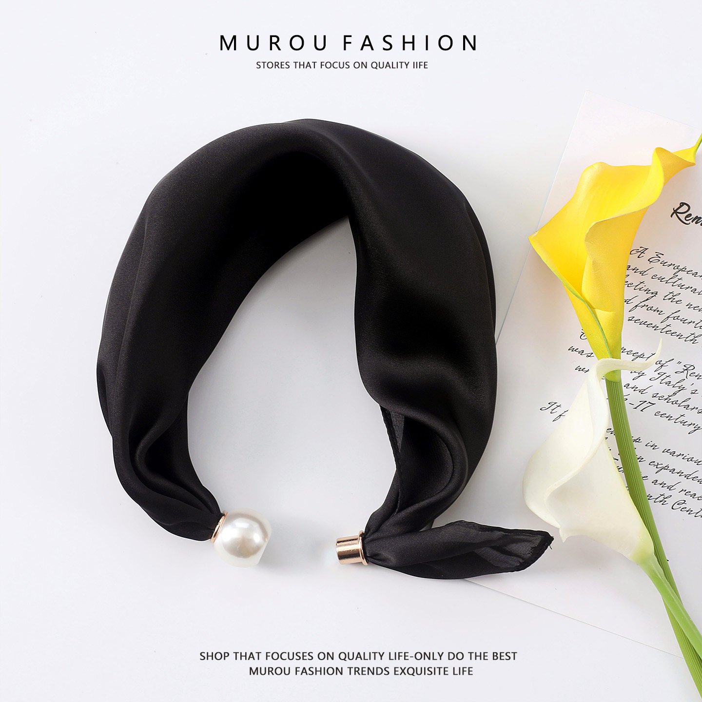 磁吸扣珍珠小长条丝巾女春秋夏季 薄围巾 护颈围脖子懒人搭配衬衫