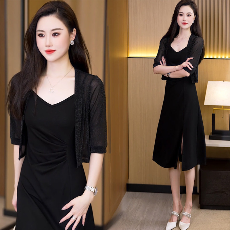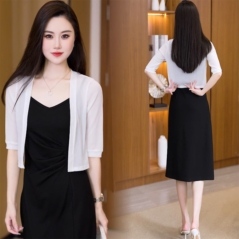偻空网纱半袖 小披肩外搭女短款 开衫 薄款 夏季 坎肩罩衫 配吊带裙子