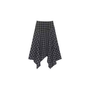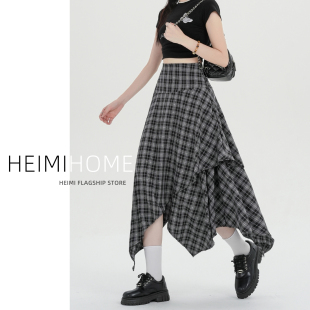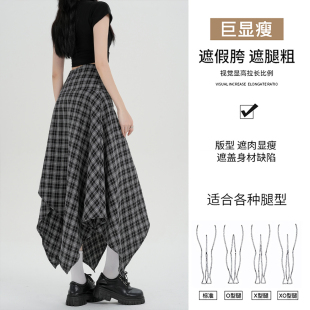 黑灰色格纹半身裙女夏季 设计感a字中长裙小个子不规则格子裙春秋