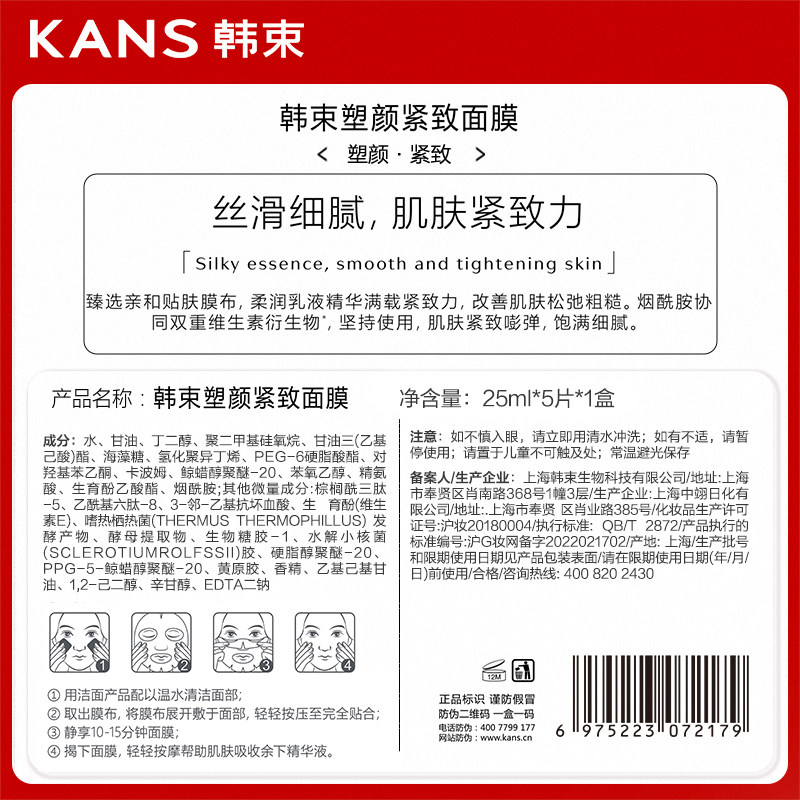 韩束塑颜紧致面膜补水保湿 旗舰店 提拉紧致抗皱收缩毛孔女官方正品