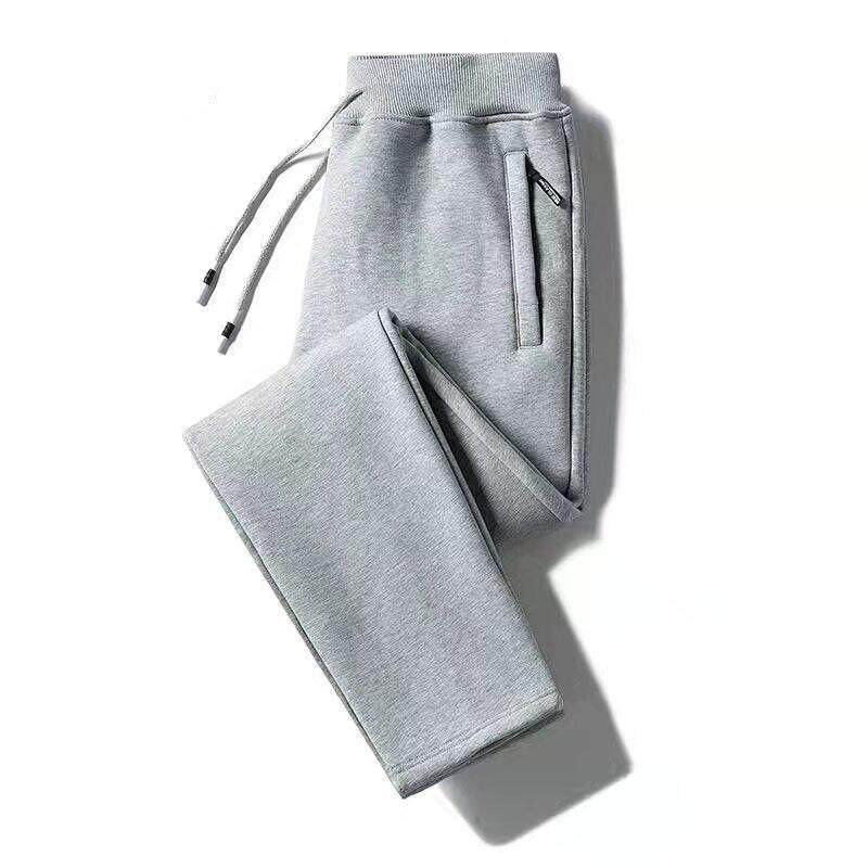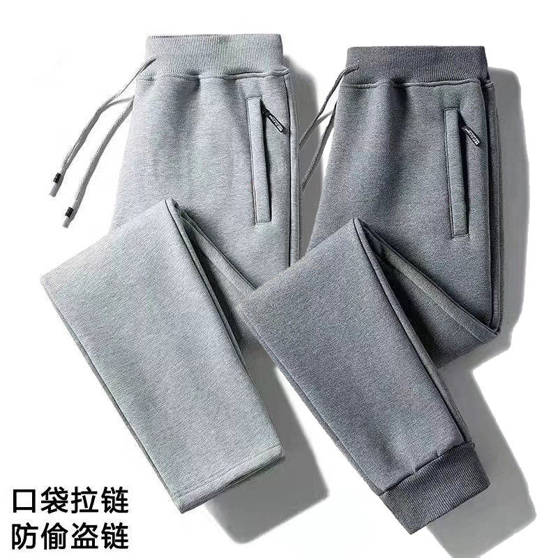 加绒保暖直筒长裤 秋冬季 男宽松大码 男松紧腰运动卫裤 子 纯色休闲裤