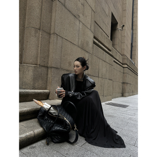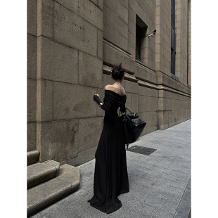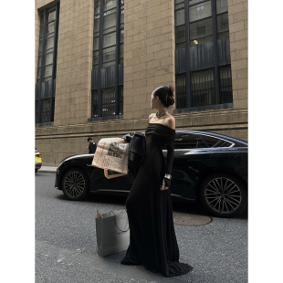修身 Fanptntox 新款 连衣裙女秋季 显瘦气质长裙针织裙子 一字肩长袖