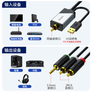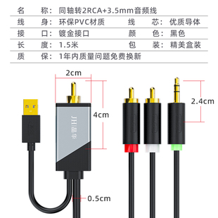 晶华SPDIF同轴转莲花RCA音频线电视机接音响数字模拟信号转3.5mm头红白音箱转换器射频输出aux功放格式 转换线