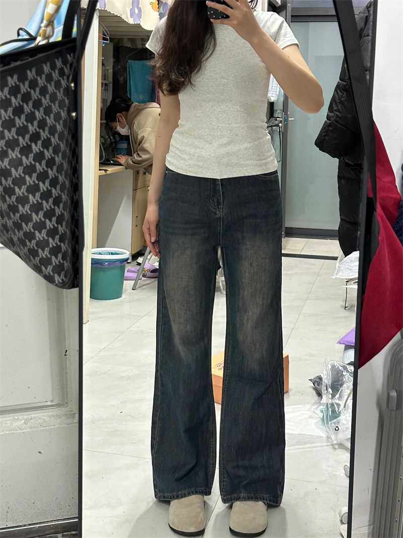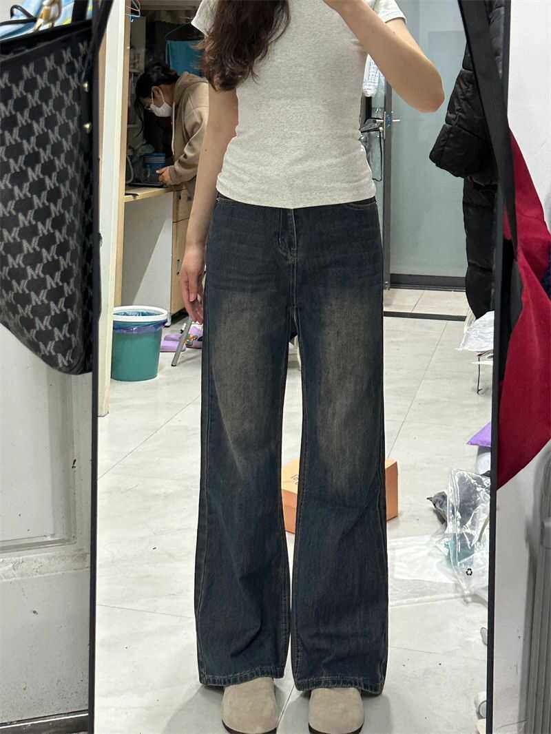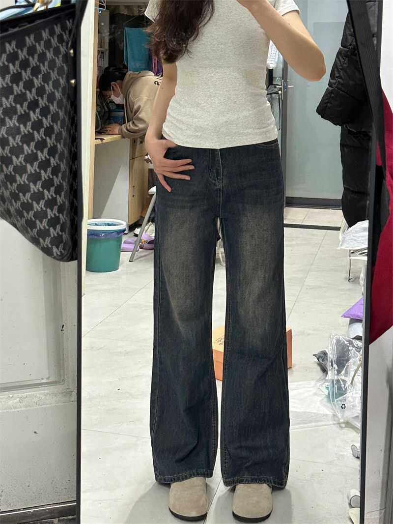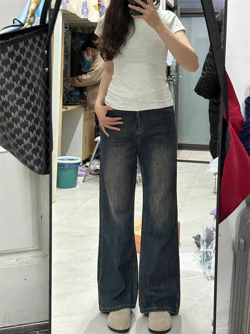 子 松弛感复古直筒显瘦拖地裤 橘子树在哪儿丹宁风微喇牛仔裤 女秋季