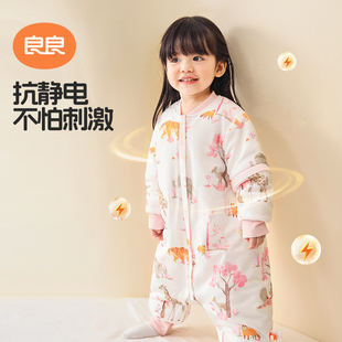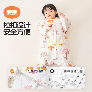 良良婴儿纯棉睡袋春秋薄款 中大童防踢被秋冬宝宝防惊跳分腿睡袋
