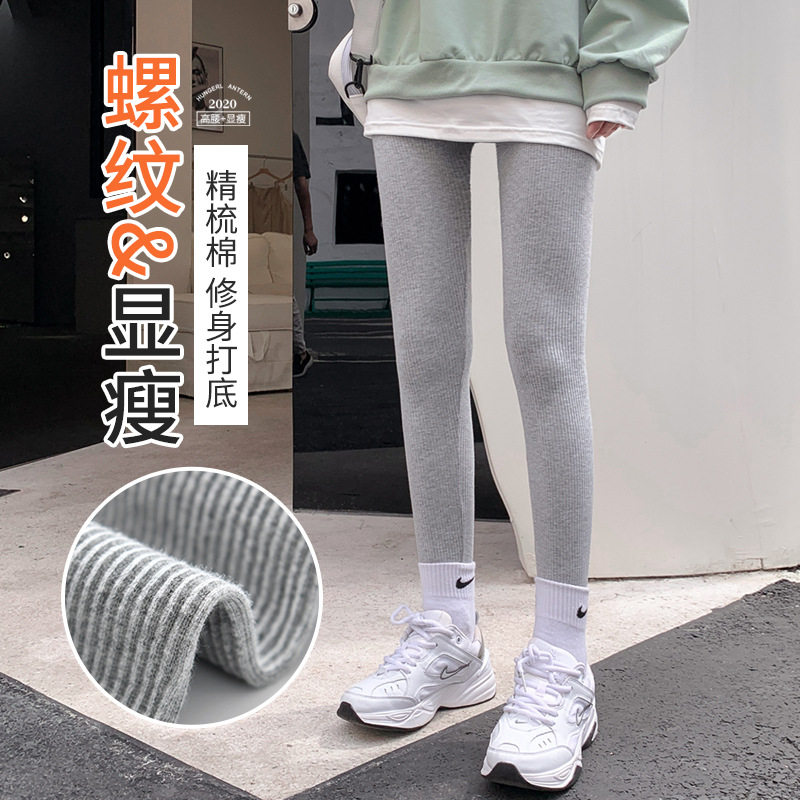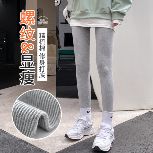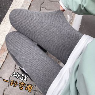 灰色螺纹打底裤 新款 女外穿薄款 秋裤 子女 袋装 弹力紧身显瘦裤 春秋季