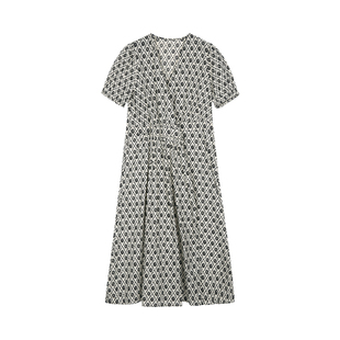 条纹挂脖v领长款 酒午 复古海军风夏季 法式 大摆连衣裙女 蓝晒