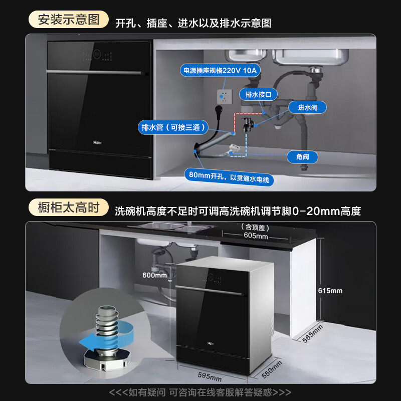 海尔麦浪洗碗机变频双面洗18套家用全自动嵌入式 可消毒W5000Plus
