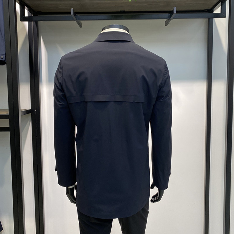 超值回馈有里衬男士 翻领风衣藏青色商务休闲外套领佐诺依 薄款