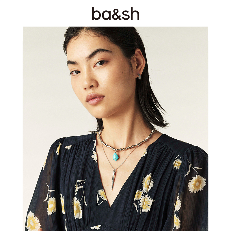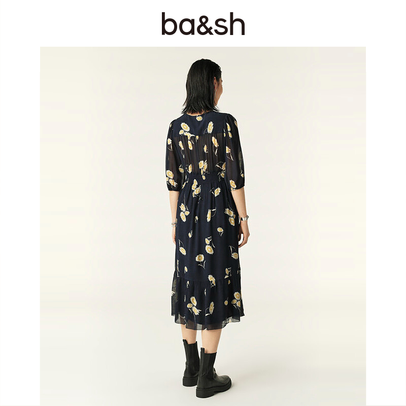 小雏菊印花桑蚕丝混纺法式 bash秋季 连衣裙1E24DAVY 杨采钰同款