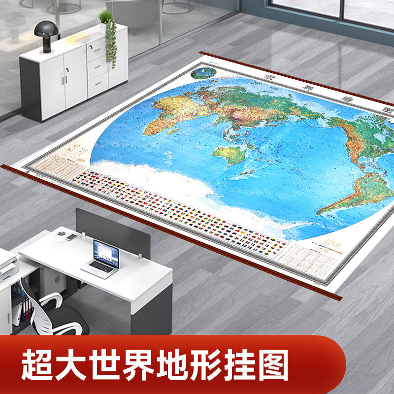 2.35米超大挂图 世界地形图 办公室背景墙装 饰画 社 星球地图出版 星球社直营