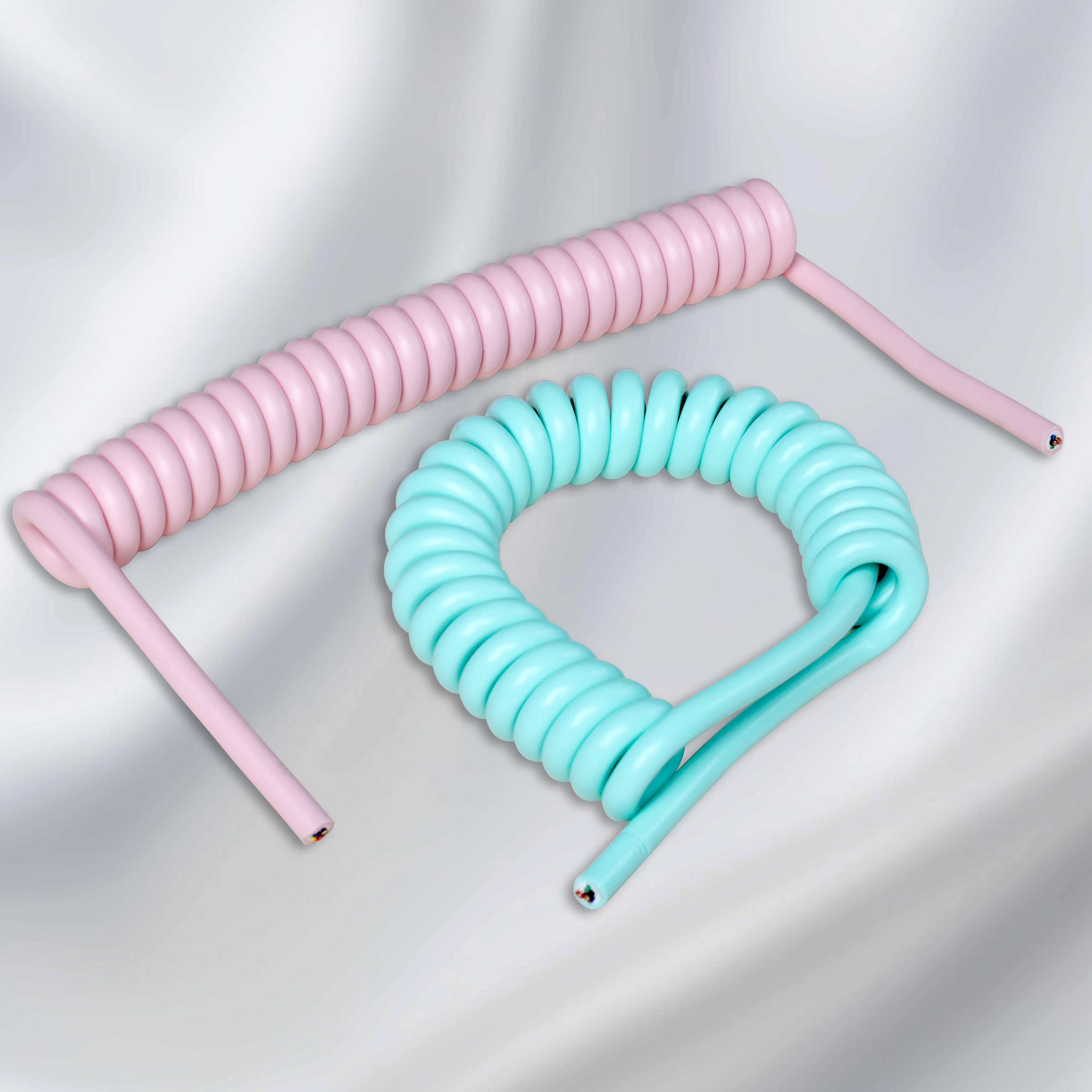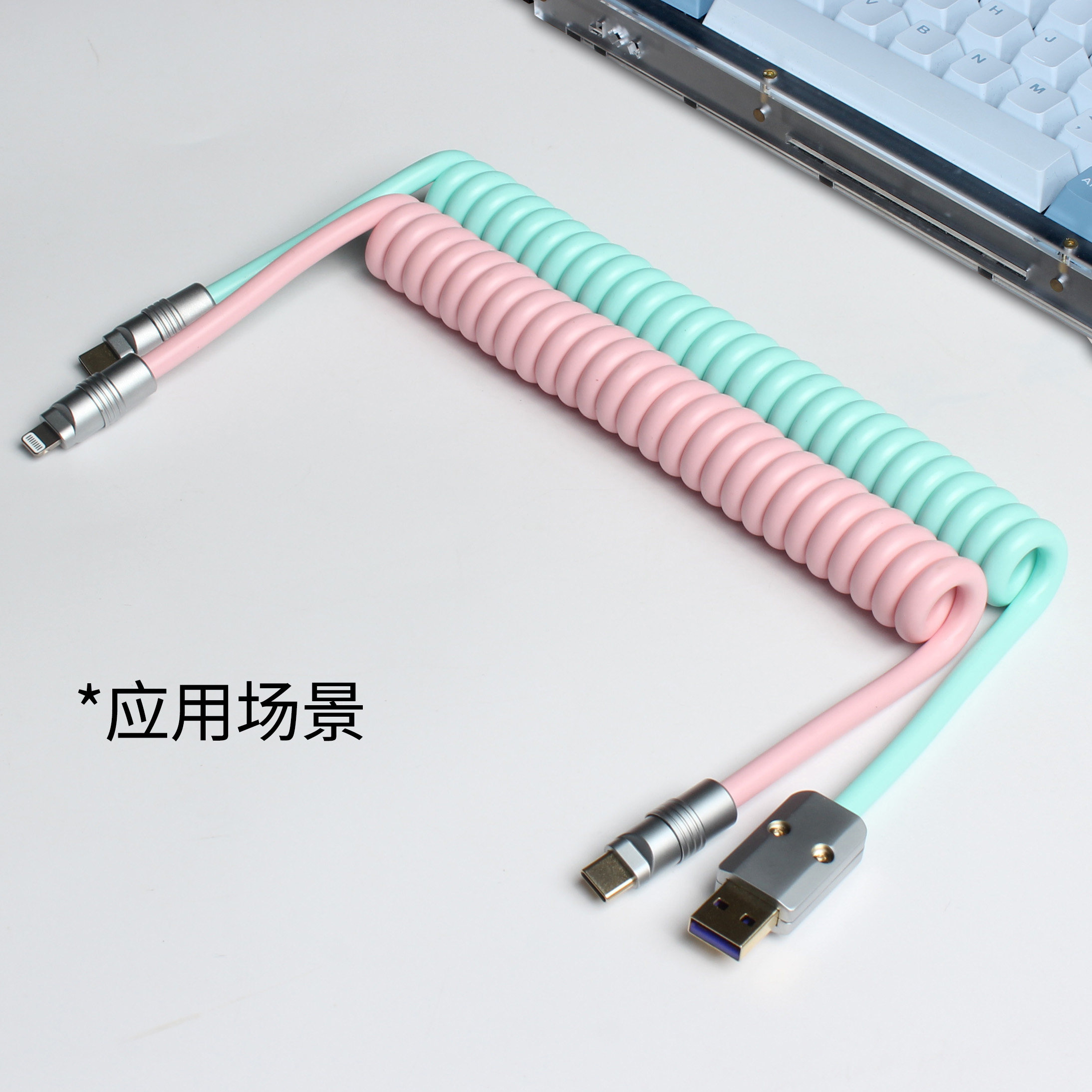 弹簧线手工键盘5芯usb大电流蓝粉色螺旋仿液态硅胶适用手机快充线
