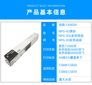 5860 原装 5850 83墨粉盒碳粉C5840 5870复印机黑彩色硒鼓 佳能NPG