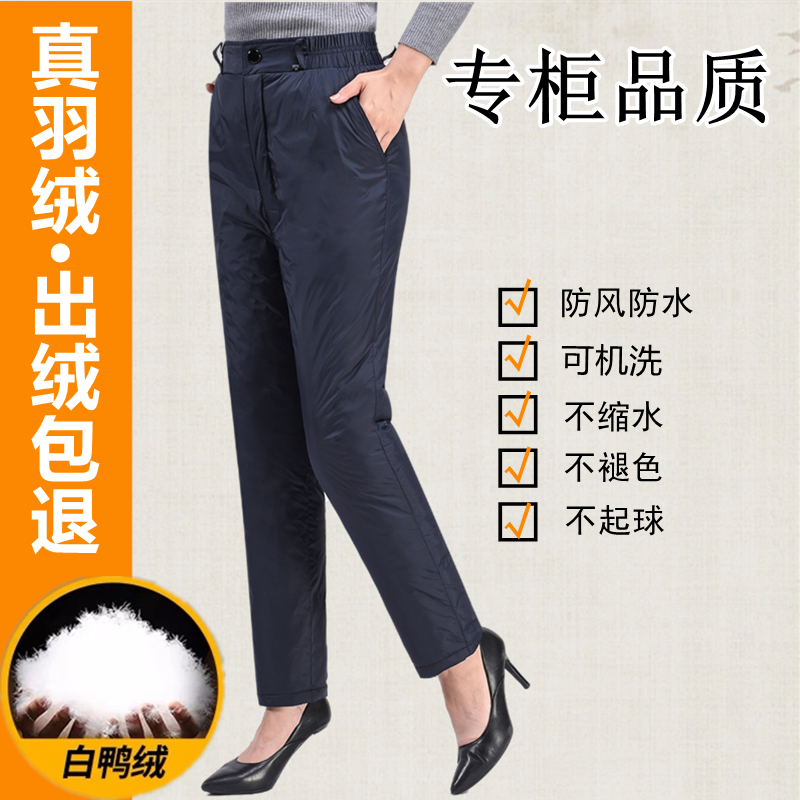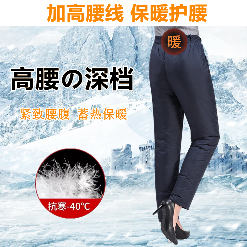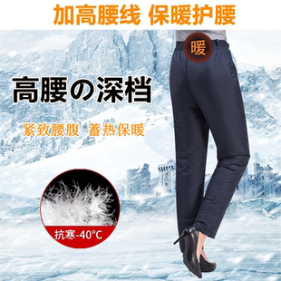 羽绒裤 中老年外穿白鸭绒裤 女高腰加厚防寒保暖棉裤 妈妈裤 大码 冬季